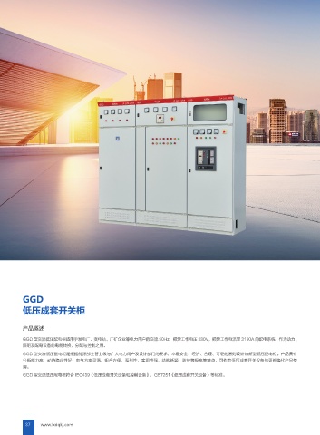GGD 型交流低压配电柜符合 IEC439《低压成套开关设备和控制设备》,GB7251《低压成套开关设备》等标准。