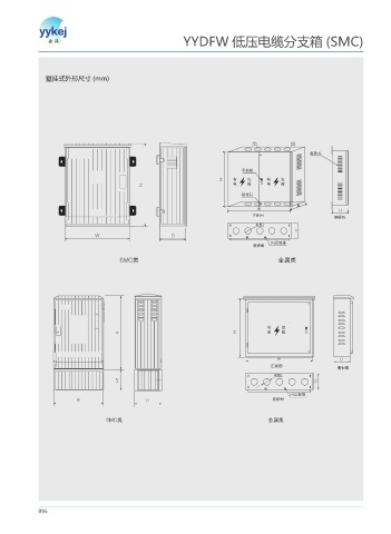 YYDFW 低压电缆分支箱 (SMC) 壁挂式外形尺寸 (mm) བߗ ౺ᩙ ) థ ӿ థ ӿ ) ႂ ᬖ ႂ ᬖ ᨤ᧫ 8 % በͳڎ Ξڎ 8 % ڌ߿ڠଅ ऄڎ 4.$ዜ ᧚࡚ዜ థ ӿ ) ) ႂ ᬖ 8 % ൣڎ Ξڎ ) % ڌ߿ڠଅ 8 % ऄڎ 4.$ዜ ᧚࡚ዜ 095