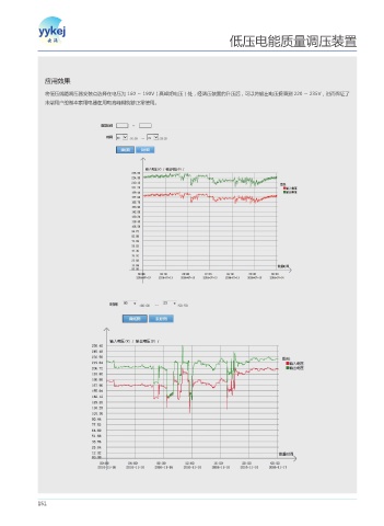 低压电能质量调压装置 应用效果 将低压线路调压器安装点选择在电压为 160 ~ 190V(高峰期电压)处,经调压装置的升压后,可以将输出电压提高到 220 ~ 235V,进而保证了 末端用户的基本家用电器在用电高峰期能够正常使用。 151