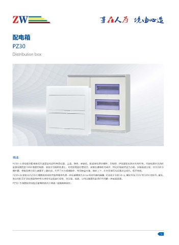 PZ30-B( 原型号 PZ30X) 模数化终端组合配电箱系列是一种安装模数为 9mm 终端电器的装置,它适用于交流 50Hz,额定电压 220V 与 380V 的住宅、车站、